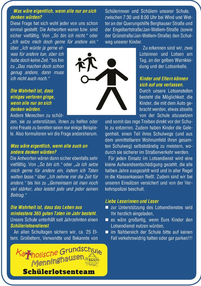 Wenn Sie Interesse haben unsere Lotsinnen und Lotsen zu unterstützen melden Sie sich bitte bei unsere Schulpflegschaft unter schulpflegschaft@kgsmenninghausen.de .